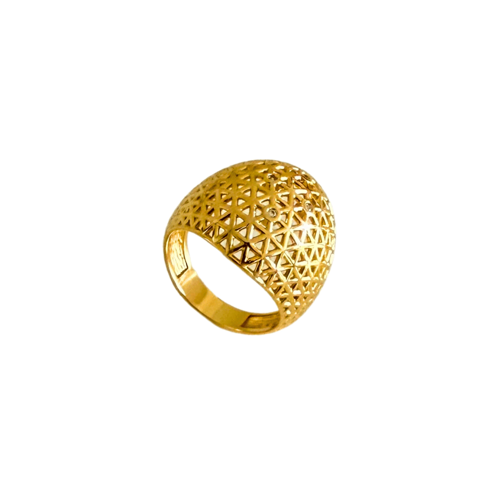 O Anel Trama é pura sofisticação em cada detalhe. Com design vazado em formas geométricas e quatro delicadas zircônias no topo, ele combina leveza e brilho na medida certa. Banhado a ouro 18k, é uma peça elegante e versátil, ideal para quem deseja unir modernidade e sofisticação em um só acessório.