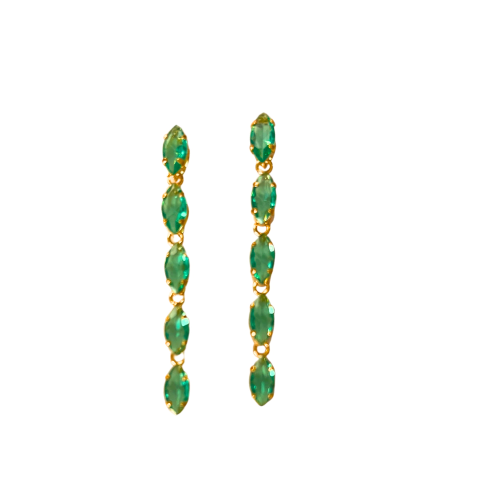 Este elegante brinco alongado é uma peça sofisticada que exala luxo e delicadeza. Com 5,6 cm de comprimento, ele apresenta um design de navetes delicadamente dispostas, cravejadas com zircônias verdes que proporcionam um toque brilhante e refinado. Banhado a ouro 18k, o acabamento polido realça o brilho das zircônias, criando um visual glamouroso. Pesando aproximadamente 4,7 gramas, é leve e confortável, perfeito para ocasiões especiais ou para quem deseja um toque de elegância. Um acessório ideal para adicionar sofisticação ao seu look.