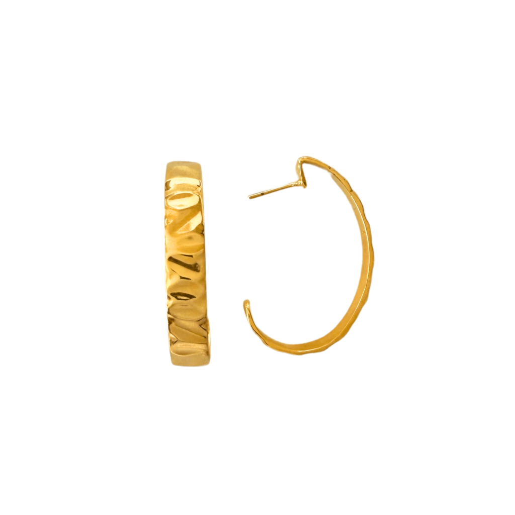 Brinco argola com design orgânico e levemente alongado, banhado a ouro 18K. Com curvas suaves e acabamento elegante, a peça traduz sofisticação com um toque artístico e moderno. Ideal para quem valoriza acessórios autorais e versáteis, que complementam tanto produções casuais quanto mais refinadas. Altura da argola 3,7 cm.