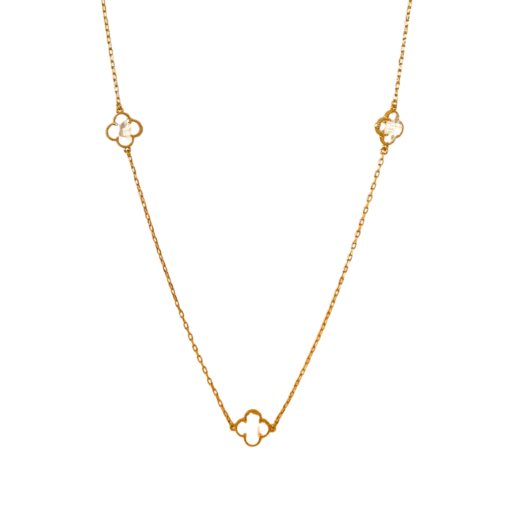Este colar encantador traz elegância e estilo em uma só peça, com três delicados pingentes translúcidos cristal distribuídos ao longo de uma corrente fina e ajustável. Cada trevo mede 1,5 cm x 1,5 cm. O colar tem o peso de aproximadamente 6,4 gramas, é leve, confortável e perfeito para o uso diário. A corrente mede 35 cm, com um extensor adicional de 5 cm, permitindo que você ajuste o comprimento conforme desejar. Esse ajuste facilita a adaptação do colar a diferentes estilos, tornando-o uma peça versátil para diversas ocasiões.