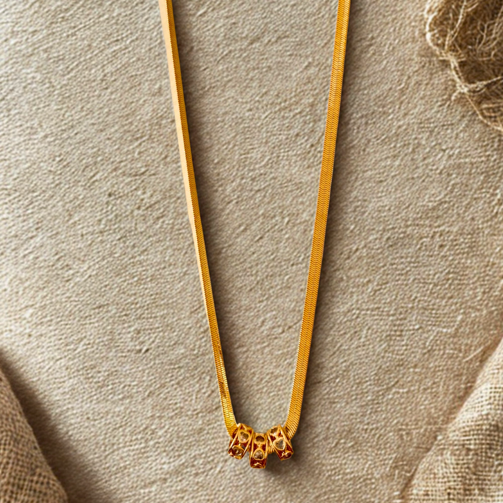 O Colar Lumiére é delicado e sofisticado, perfeito para quem aprecia detalhes sutis. Banhado a ouro 18K, tem 45 cm de comprimento com extensor de 10 cm e três pingentes de 1 cm de diâmetro cada, cravejados com zircônias que refletem a luz com elegância. Uma peça atemporal que valoriza qualquer produção.
