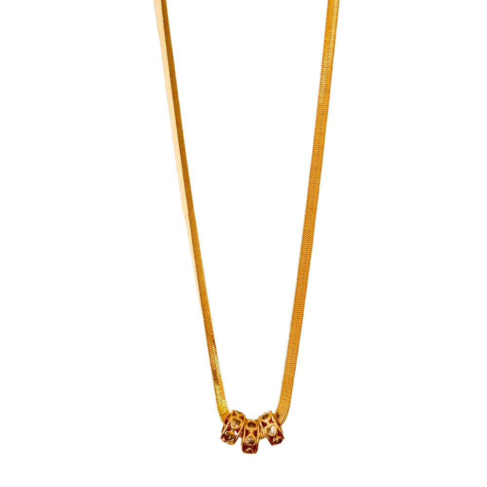 O Colar Lumiére é delicado e sofisticado, perfeito para quem aprecia detalhes sutis. Banhado a ouro 18K, tem 45 cm de comprimento com extensor de 10 cm e três pingentes de 1 cm de diâmetro cada, cravejados com zircônias que refletem a luz com elegância. Uma peça atemporal que valoriza qualquer produção.