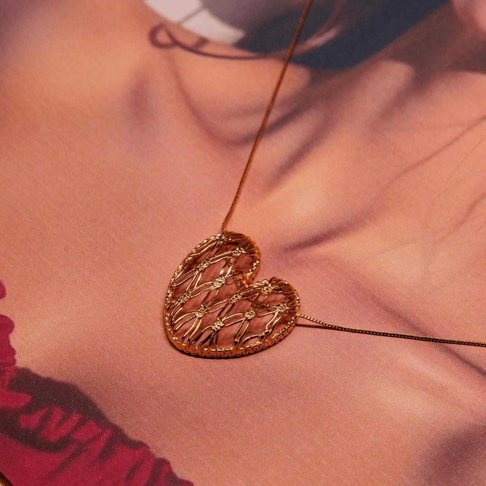 Este é um anel deslumbrante que combina elegância e estilo. Feito com cuidado artesanal, este anel apresenta um design texturizado exclusivo, inspirado no macramê, que adiciona uma dimensão tátil encantadora à peça. O coração central adiciona um toque romântico e simbólico, tornando-o perfeito como uma expressão de amor ou um presente significativo para alguém especial. Além disso, o banho de ouro 18k confere uma beleza duradoura e um brilho luxuoso, garantindo que este anel seja uma joia digna de admiração e apreciação. Peso 2,5 gr.