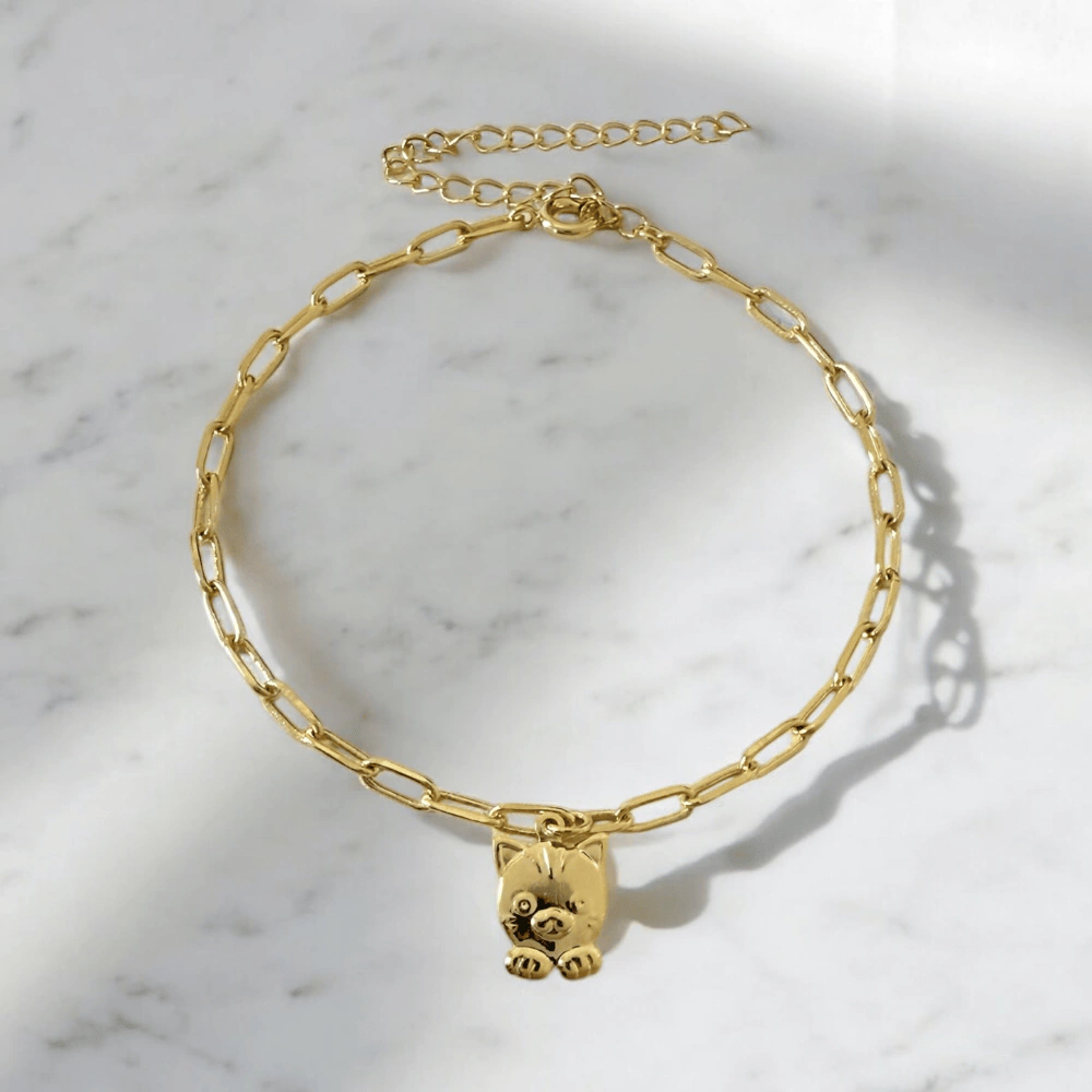 Encantadora e sofisticada, esta pulseira banhada a ouro 18K traz um delicado pingente de carinha de gato, simbolizando o amor pelos felinos. Perfeita para quem deseja carregar consigo a elegância e o charme dos gatos em um acessório único. Possui um extensor de 6 cm, garantindo um ajuste confortável. Peso 2,6 g.