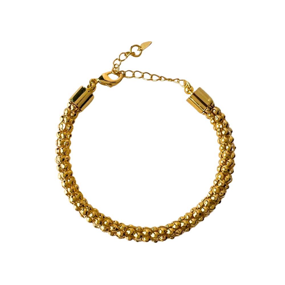A pulseira pipoca é uma inovação na indústria de joias, caracterizado por elos pequenos e redondos que se assemelham a grãos de pipoca. Essa textura exclusiva confere a esta pulseira colar um toque de originalidade e sofisticação. É um acessório fashionista que está em alta na moda atual. Além disso, combina com diversos estilos de roupas, desde looks mais casuais até produções mais sofisticadas. A sua corrente grossa e texturizada conferem à pulseira um visual marcante e ousado, perfeito para quem quer dar um toque de estilo ao visual. Peso aproximado 5,9 gr.